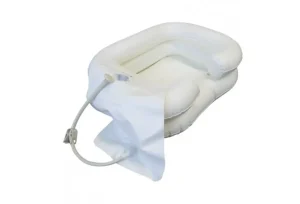 Pripomoček za umivanje glave/las. Komplet za umivanje las vsebuje napihljiv rezervoar, vrečo za vodo in cev.