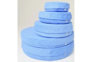 Okrogle blazine proti preležaninam so prekrite z bombažnim frotirjem in imajo notranjo odprtino. Ne dopuščajo telesnega stika s posteljo ali invalidskim vozičkom. Prevleka iz frotirja se pritrdi z VELCRO trakovi “na ježke”, kar omogoča, da jo enostavno odstranite in operete.