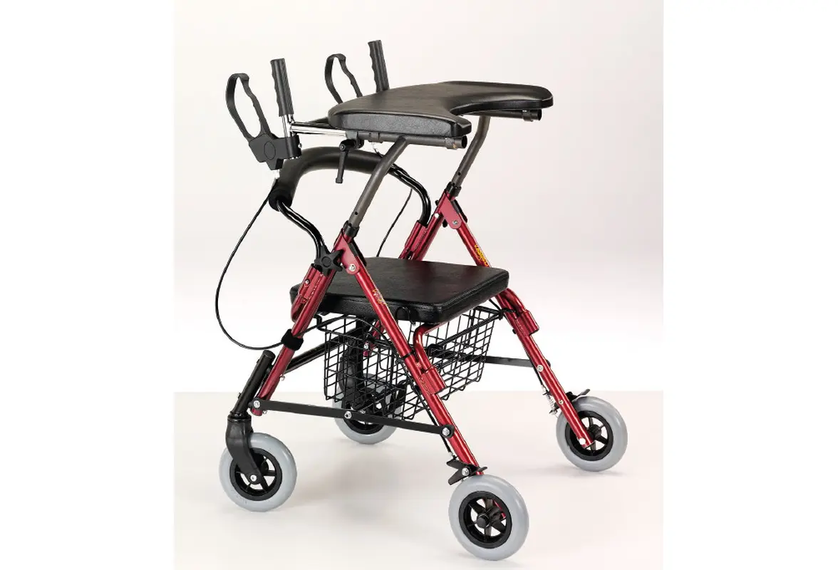 Ročaja sta nastavljiva po višini in opremljena z zavornima ročicama, ki se lahko blokirata in s tem preprečita premikanje rolatorja. Ima mizico za oporo ob hoji, mehki oblazinjen sedež, ki se lahko uporablja za počitek, pod njem pa košarico za prevoz nujnih stvari.