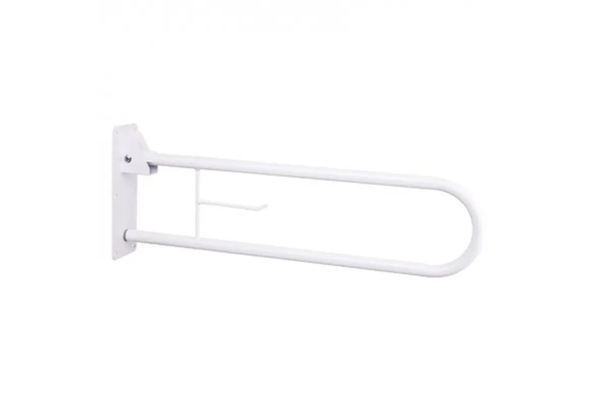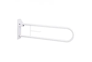 Sklopljiv ročaj je namenjen uporabi ob straniščni školjki. Pred in po uporabi račaj lahko pomaknete navzgor za lažje presedanje. Izdelek je zasnovan tako, da se pritrdi na steno in se uporablja kot podpora. Ročaj je opremljen tudi z držalom za toaletni papir.