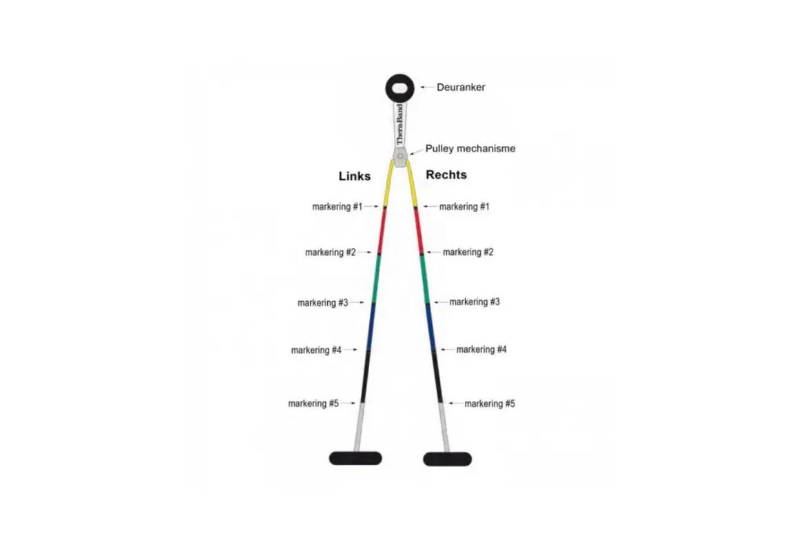 TheraBand vratni škripec z vrvjo za ramena sledi novim smernicam v terapiji in vam omogoča kontrolirano izvajanje vaj, s pomočjo označitev na vrvi.